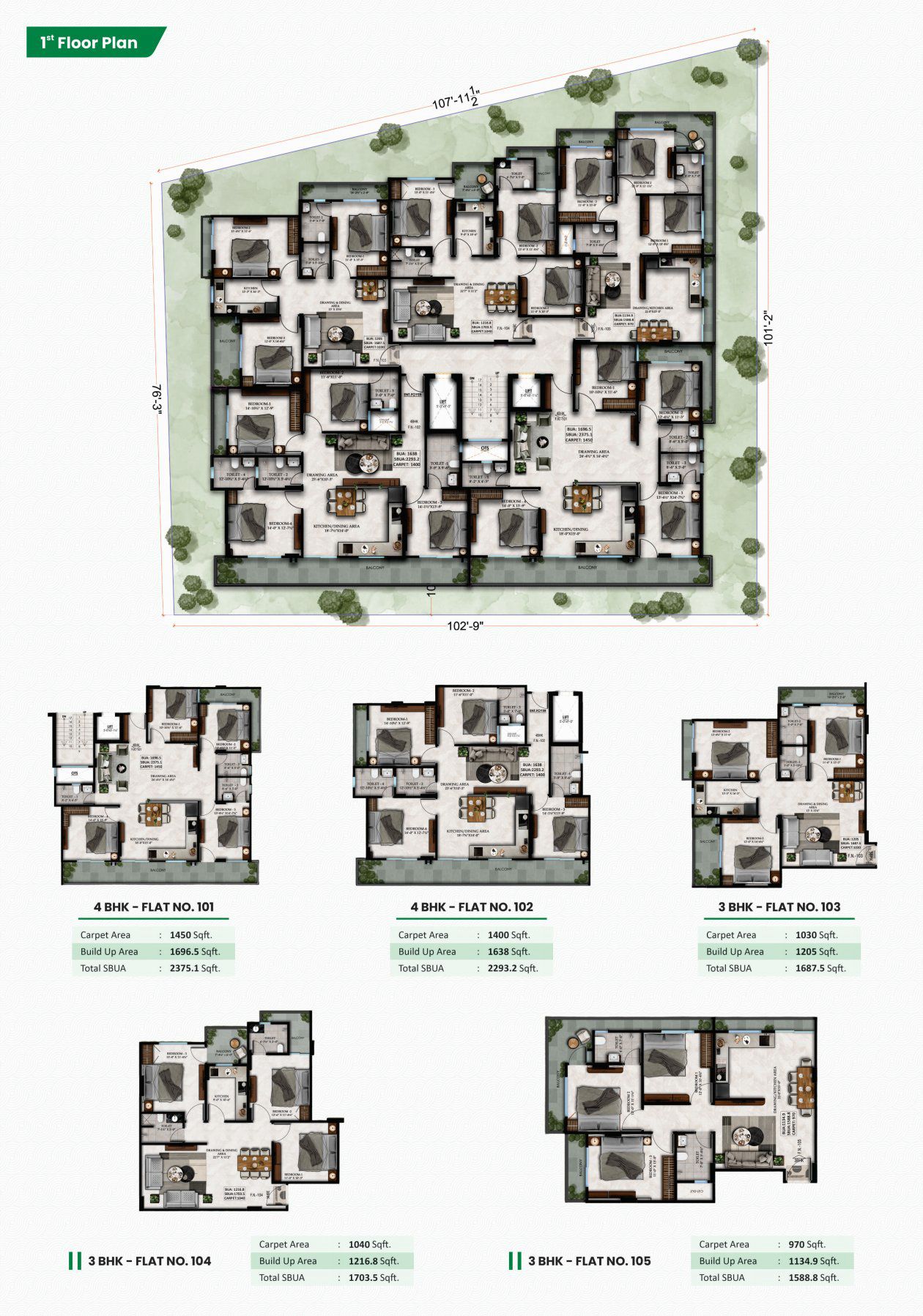 970 - 1450 Sq.ft.