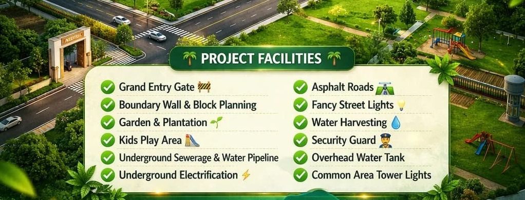 The project features well-planned residential plots in various sizes, catering to diverse needs and budgets. Designed as a gated community, Nilgiri ensures a secure and peaceful environment with wide internal roads, greenery, and modern infrastructure. The project emphasizes eco-friendly living with landscaped surroundings, avenue plantation, and open spaces that promote a healthy lifestyle.